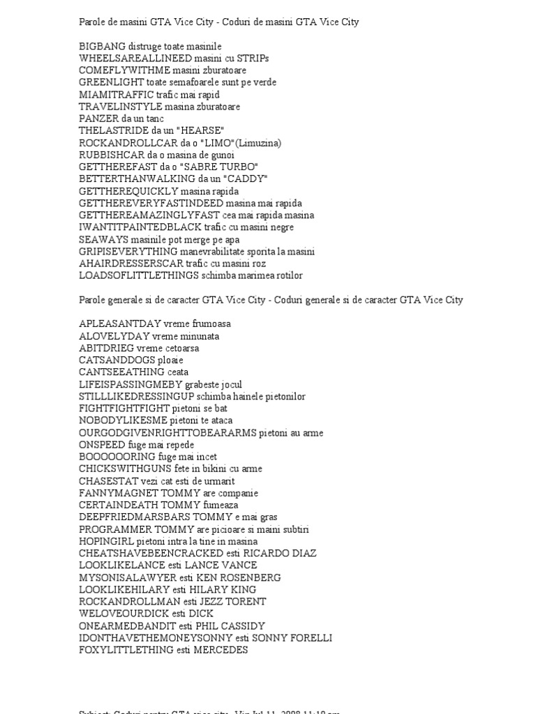 Parole De Masini Gta Vice City